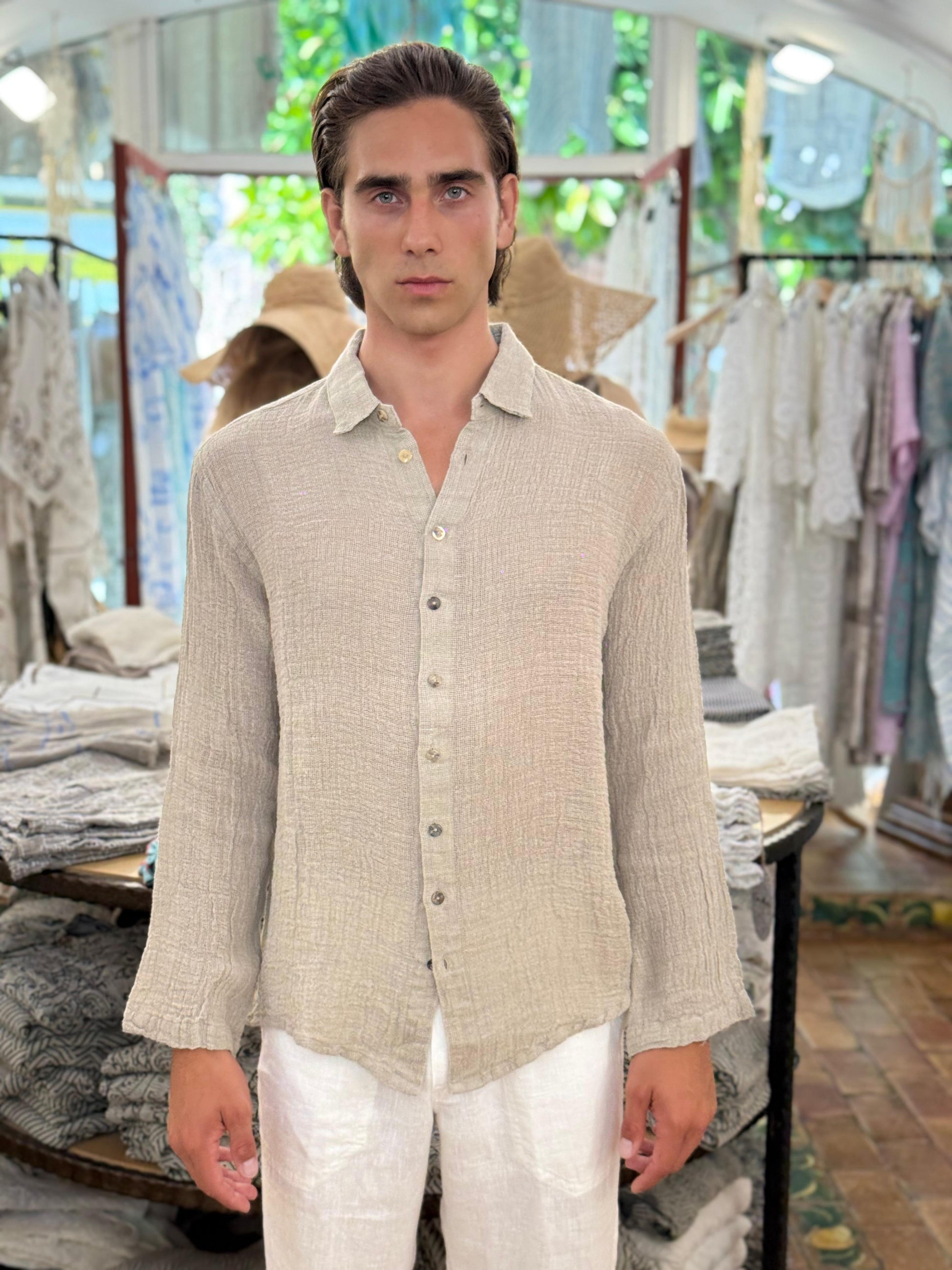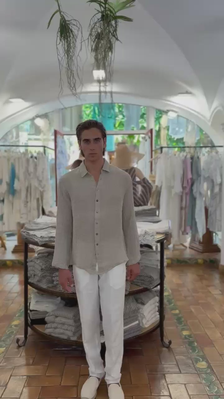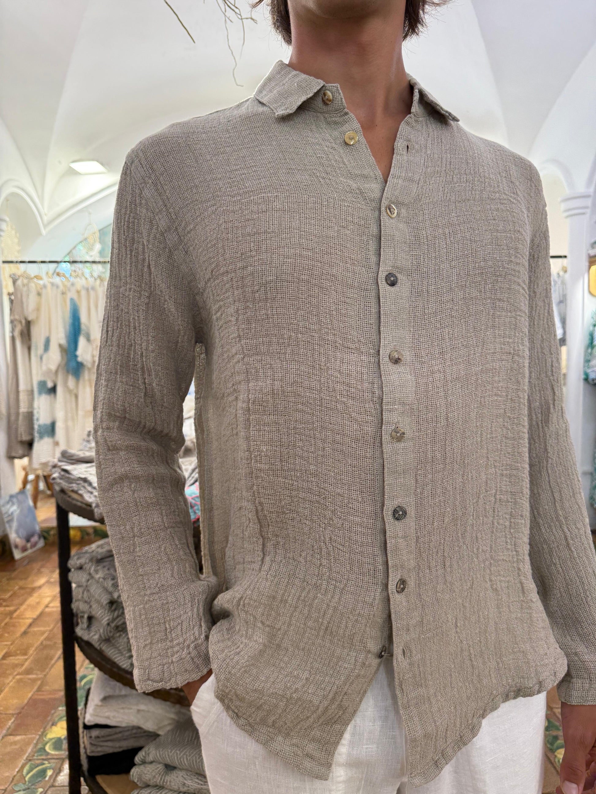 CAMICIA IN LINO RETE ÉCRU MADE IN ITALY
