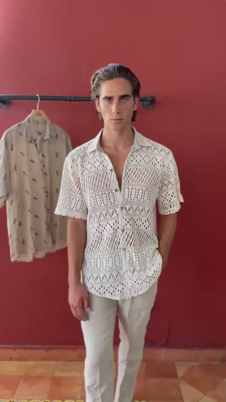 - Camicia in lino ricamato