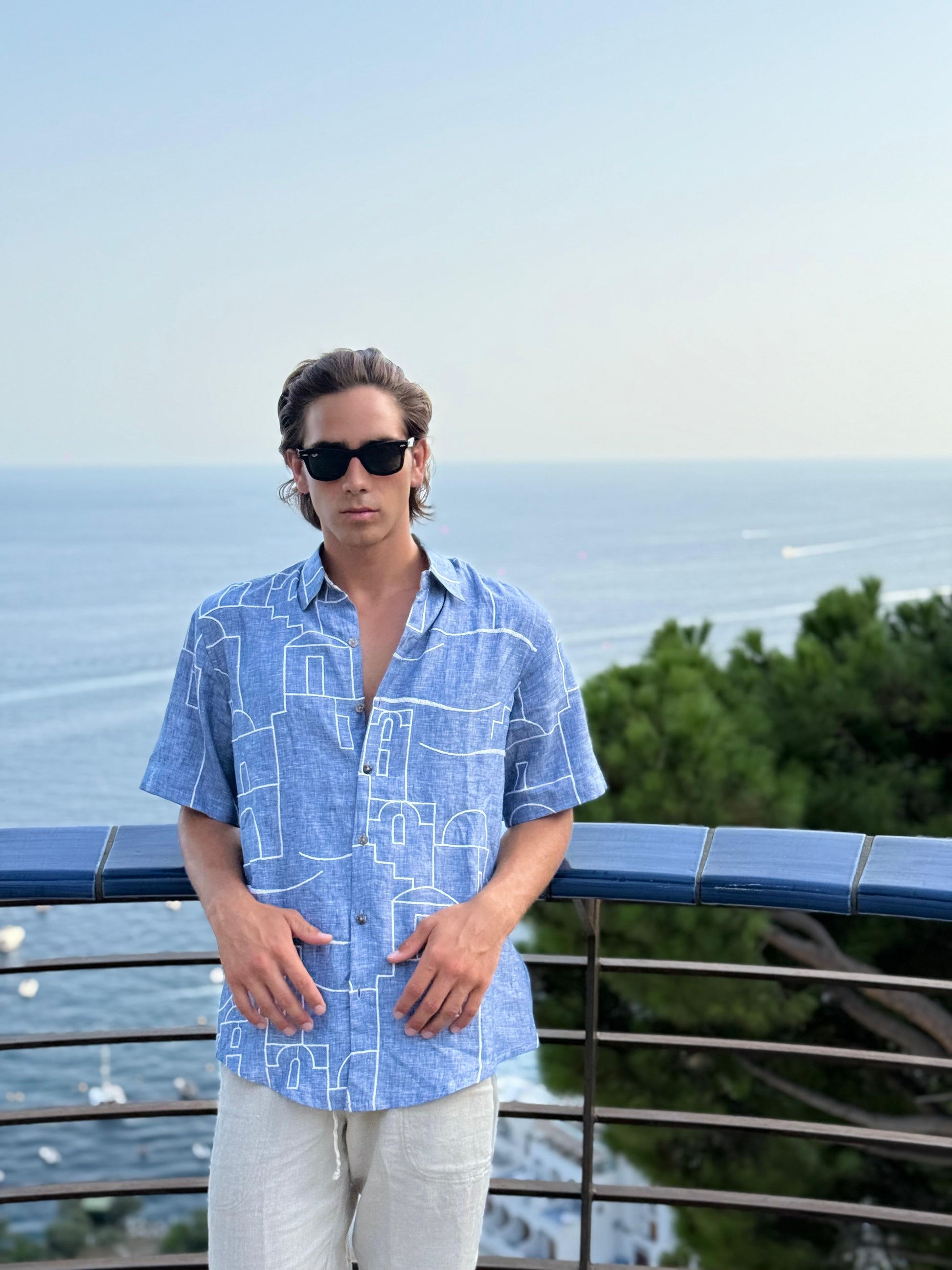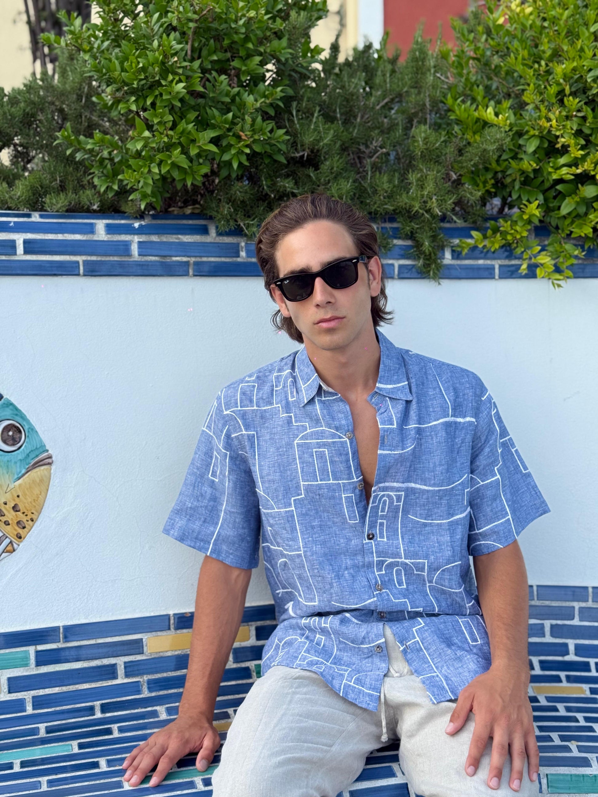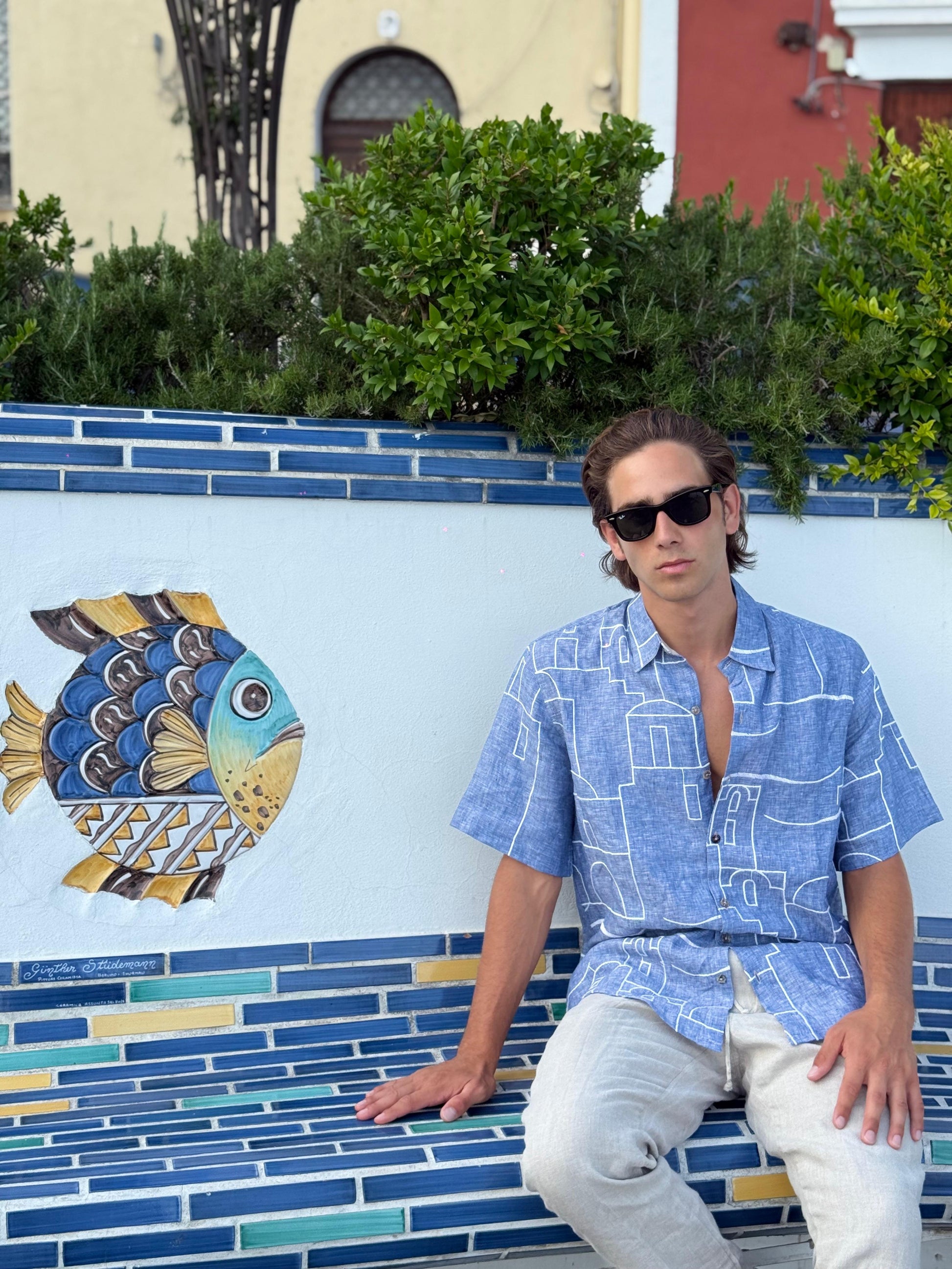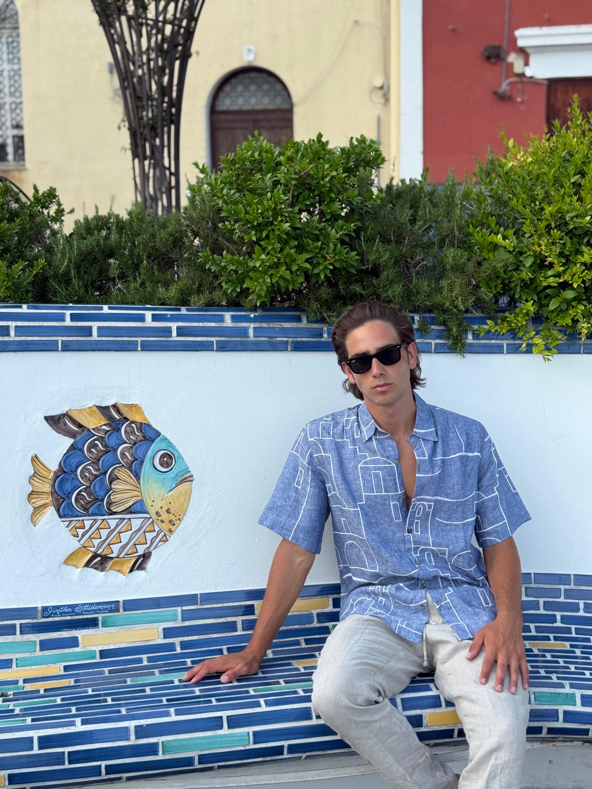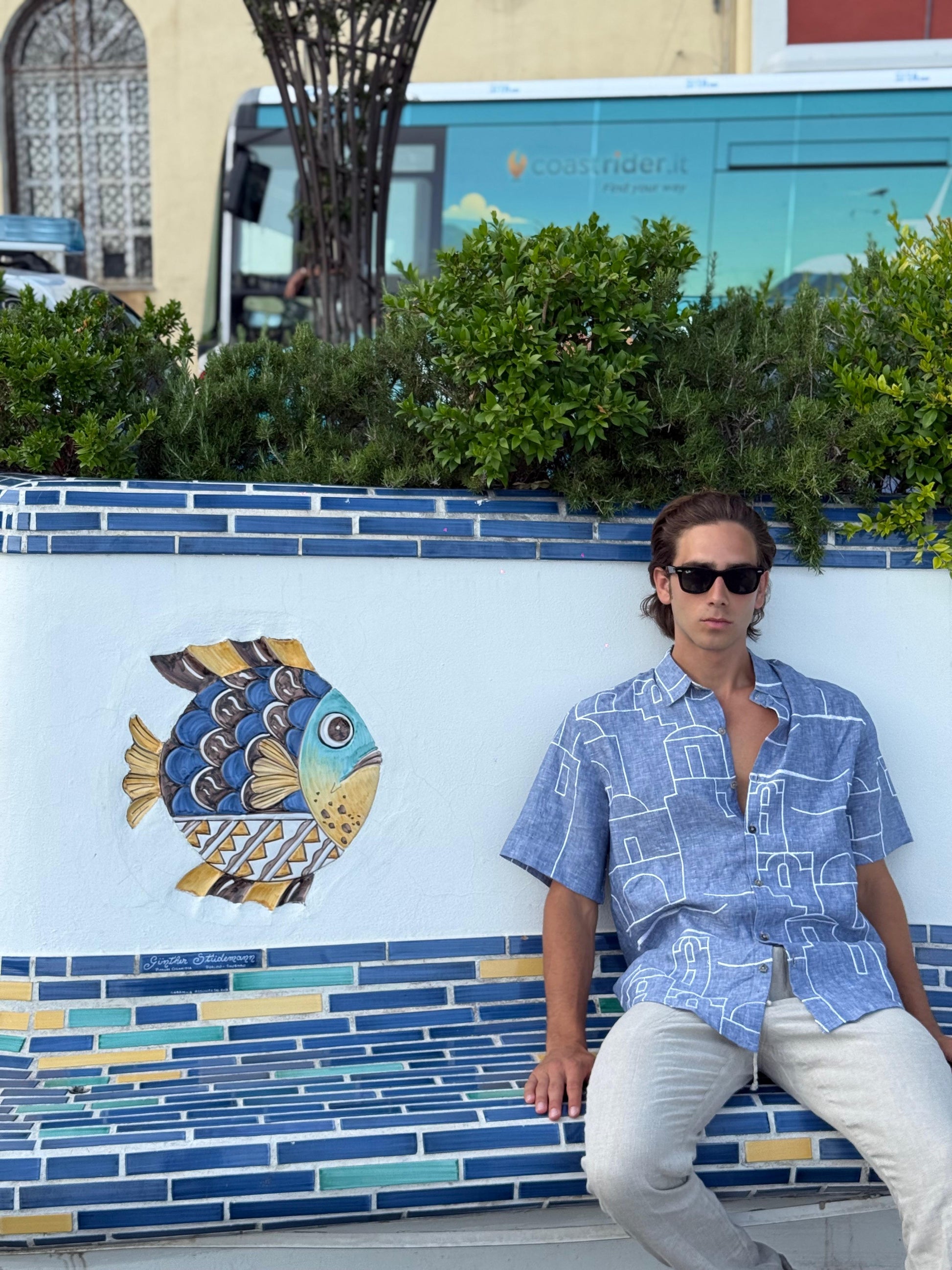 CAMICIA MEZZA MENICA POSITANO PATTERN EMBROIDERED OUTLINE