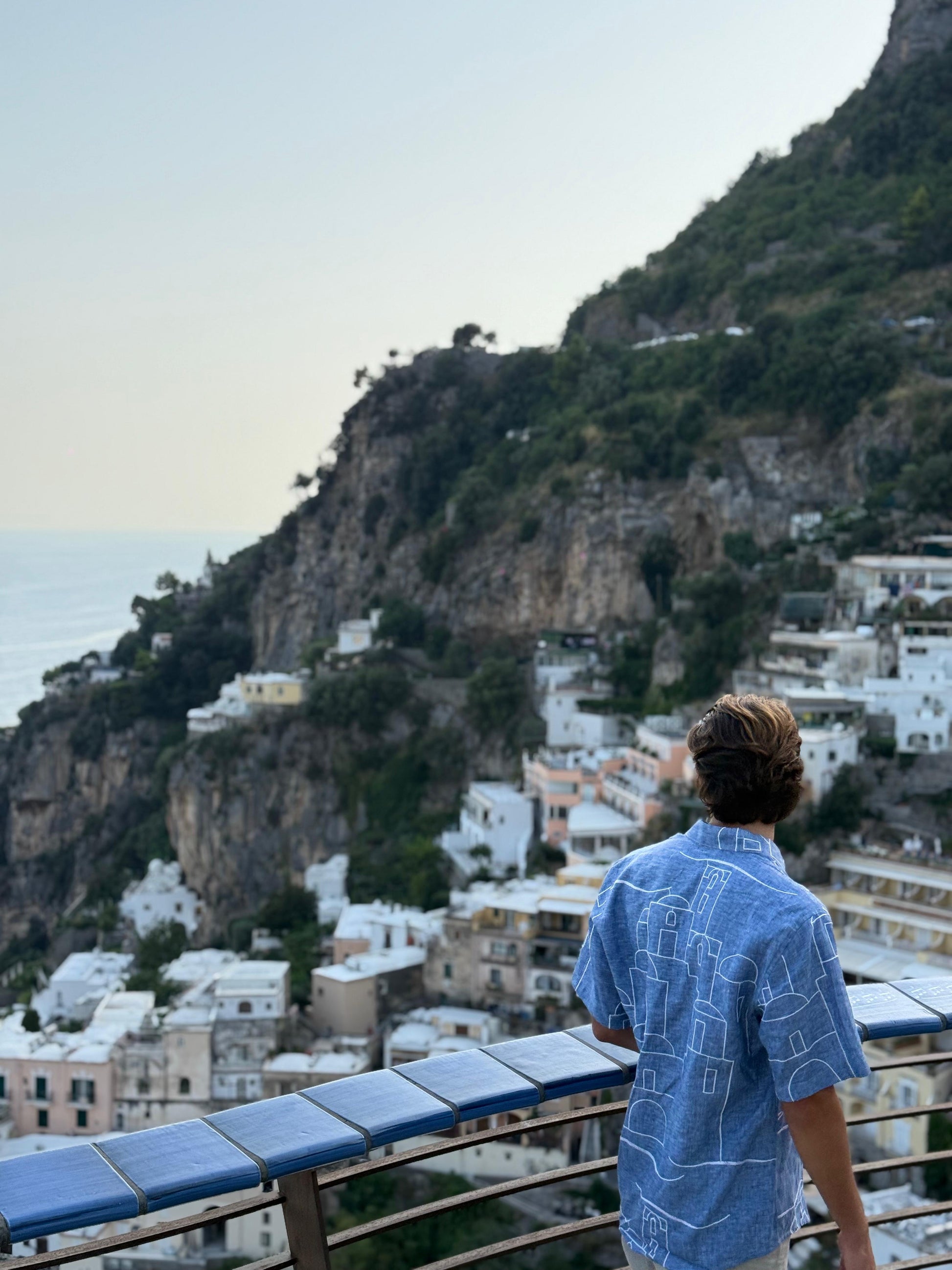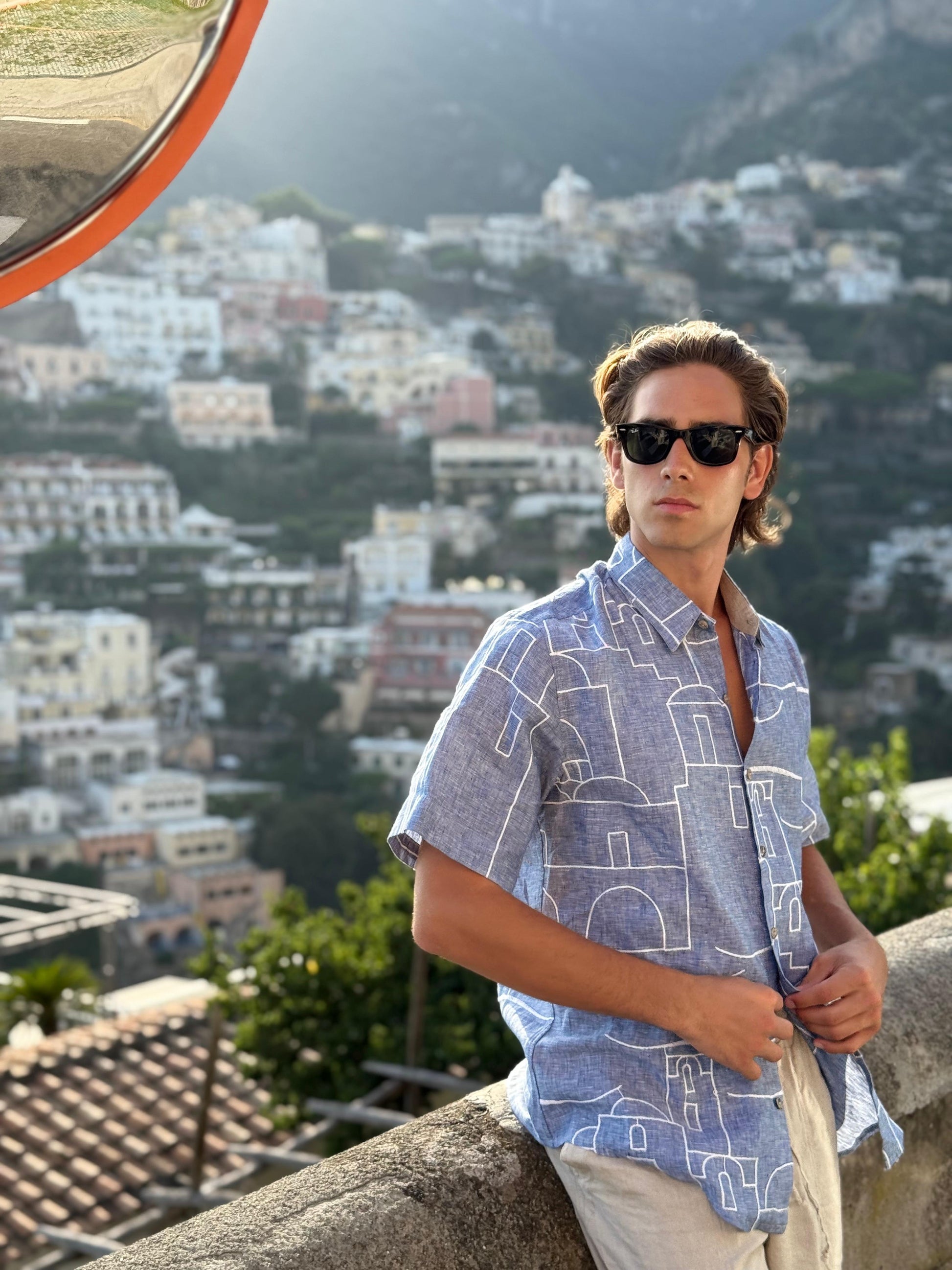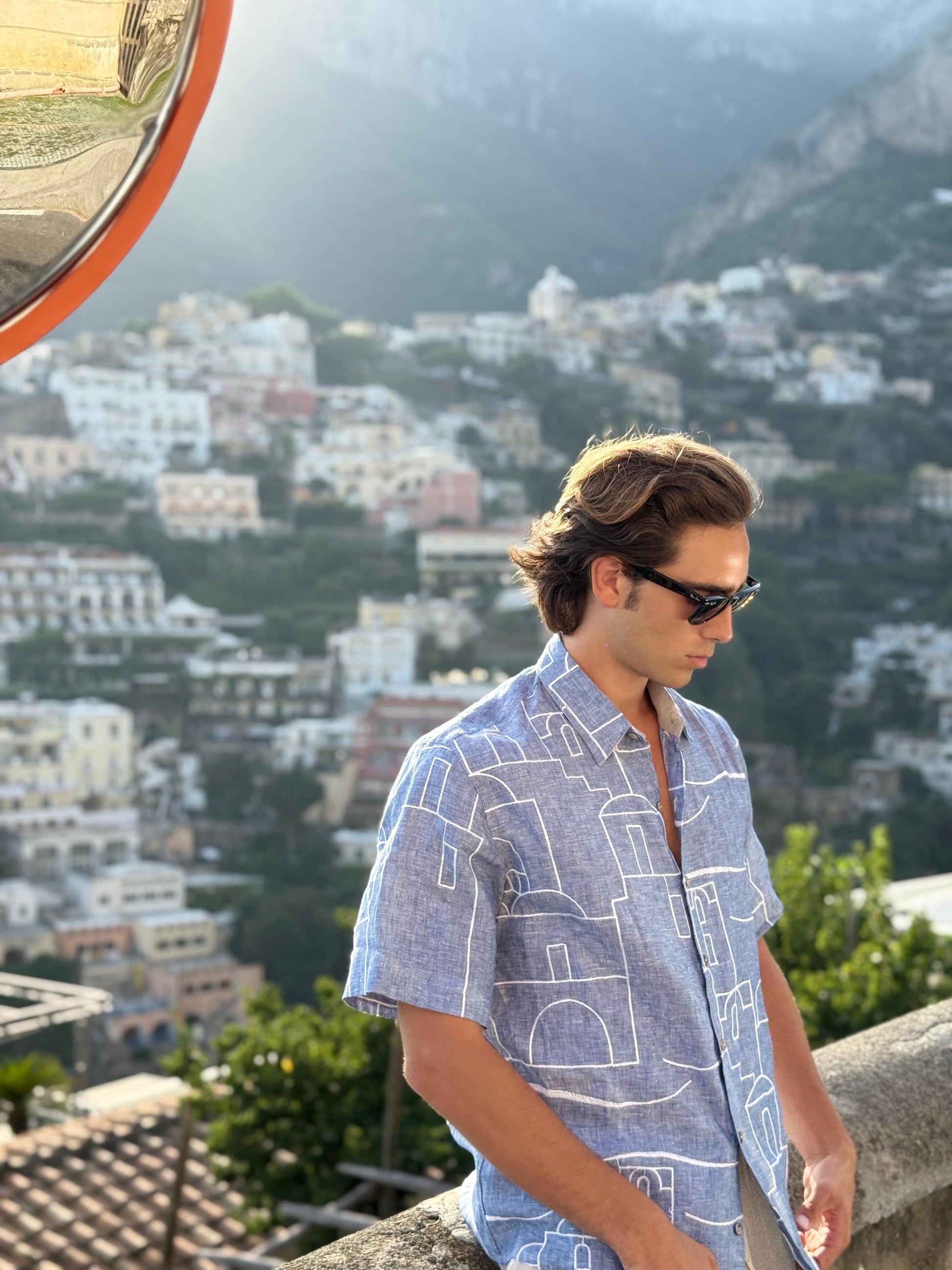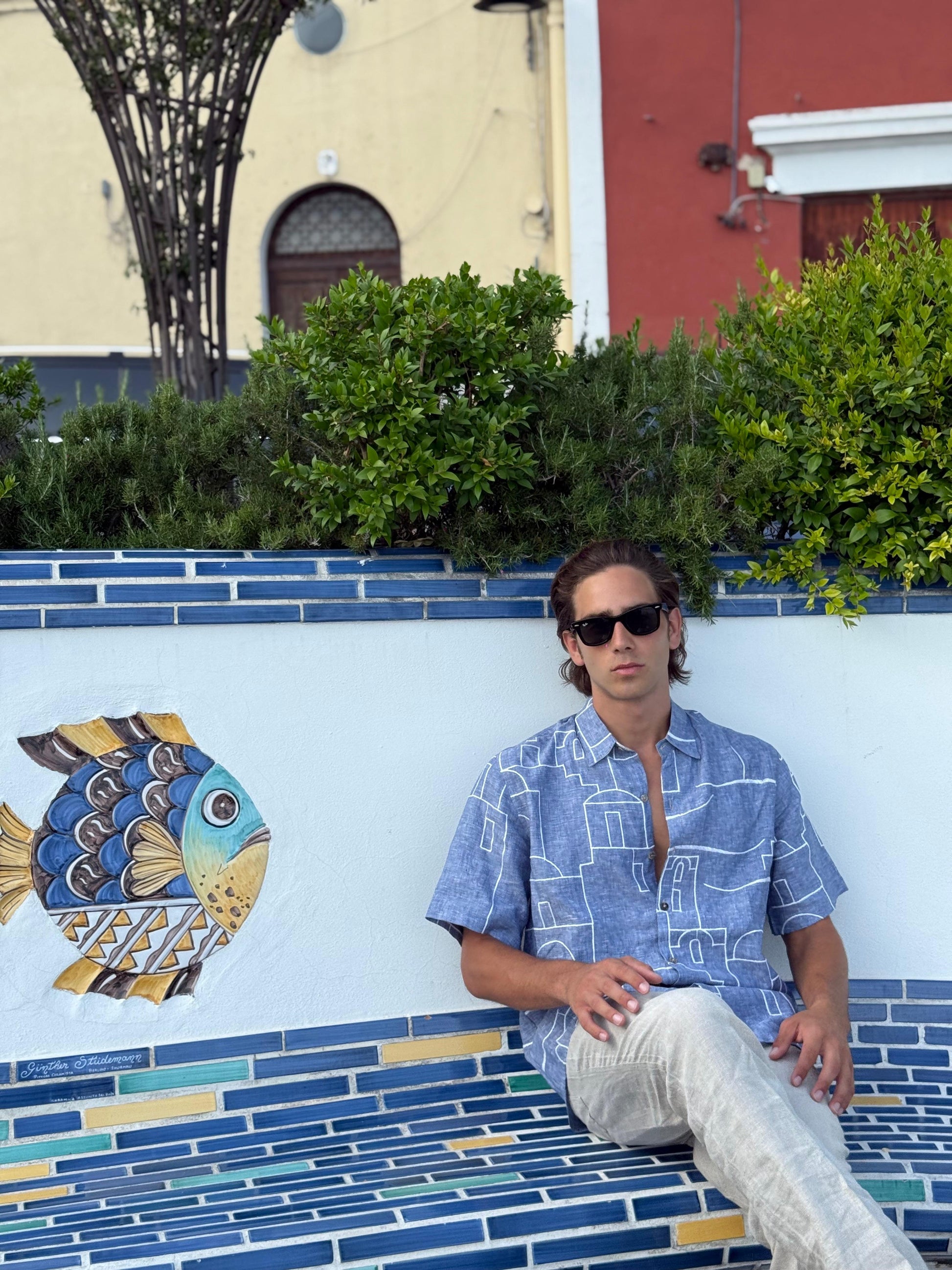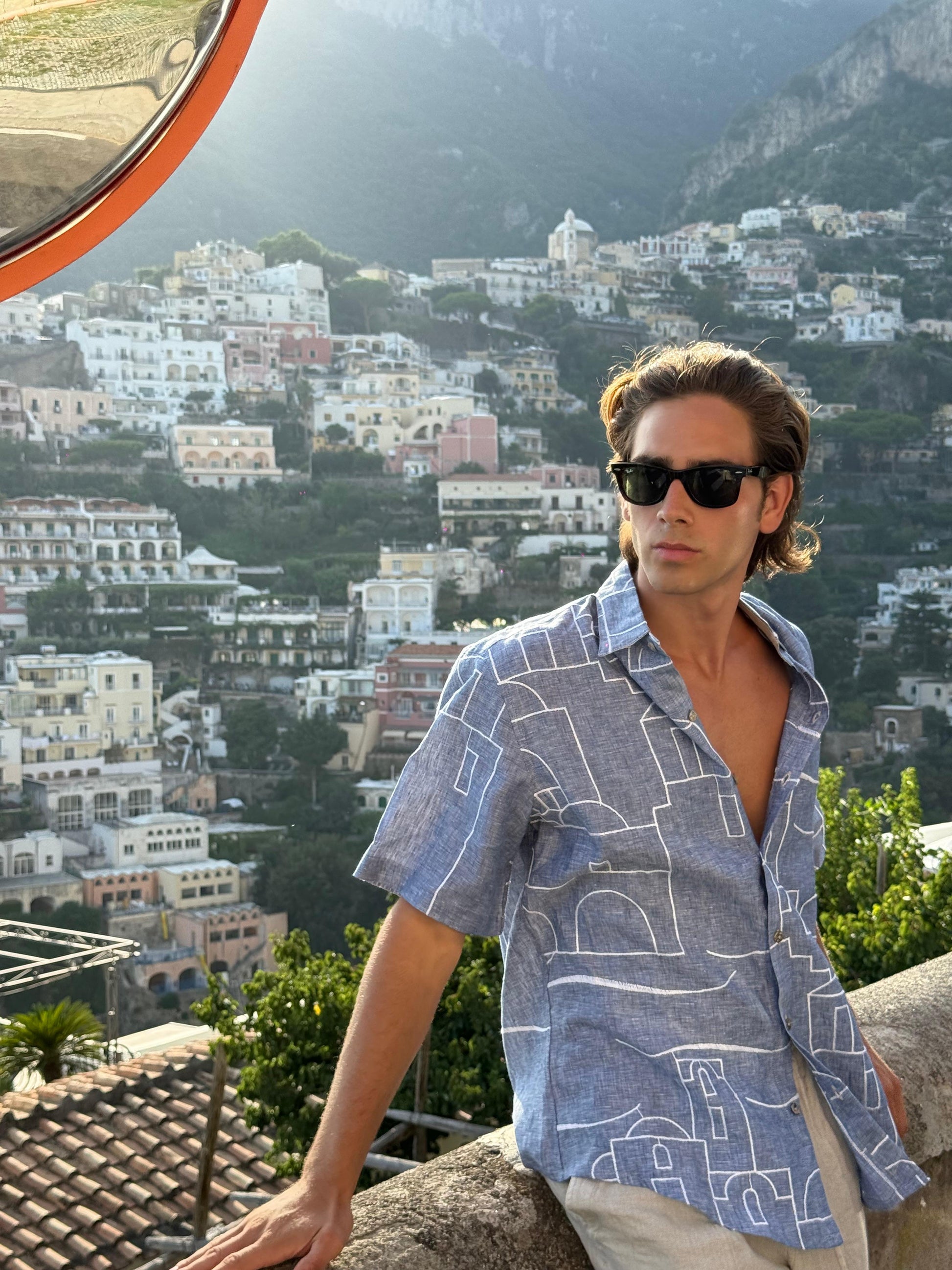CAMICIA MEZZA MENICA POSITANO PATTERN EMBROIDERED OUTLINE