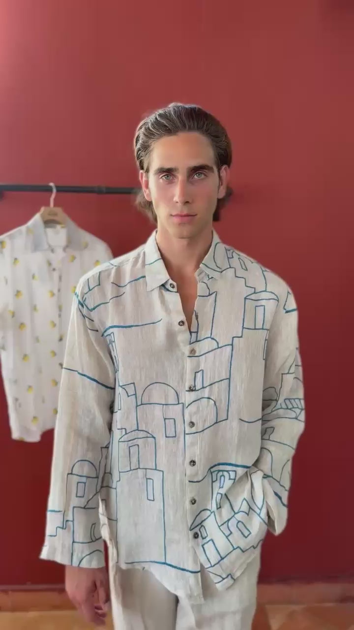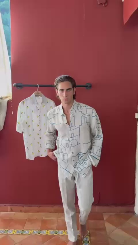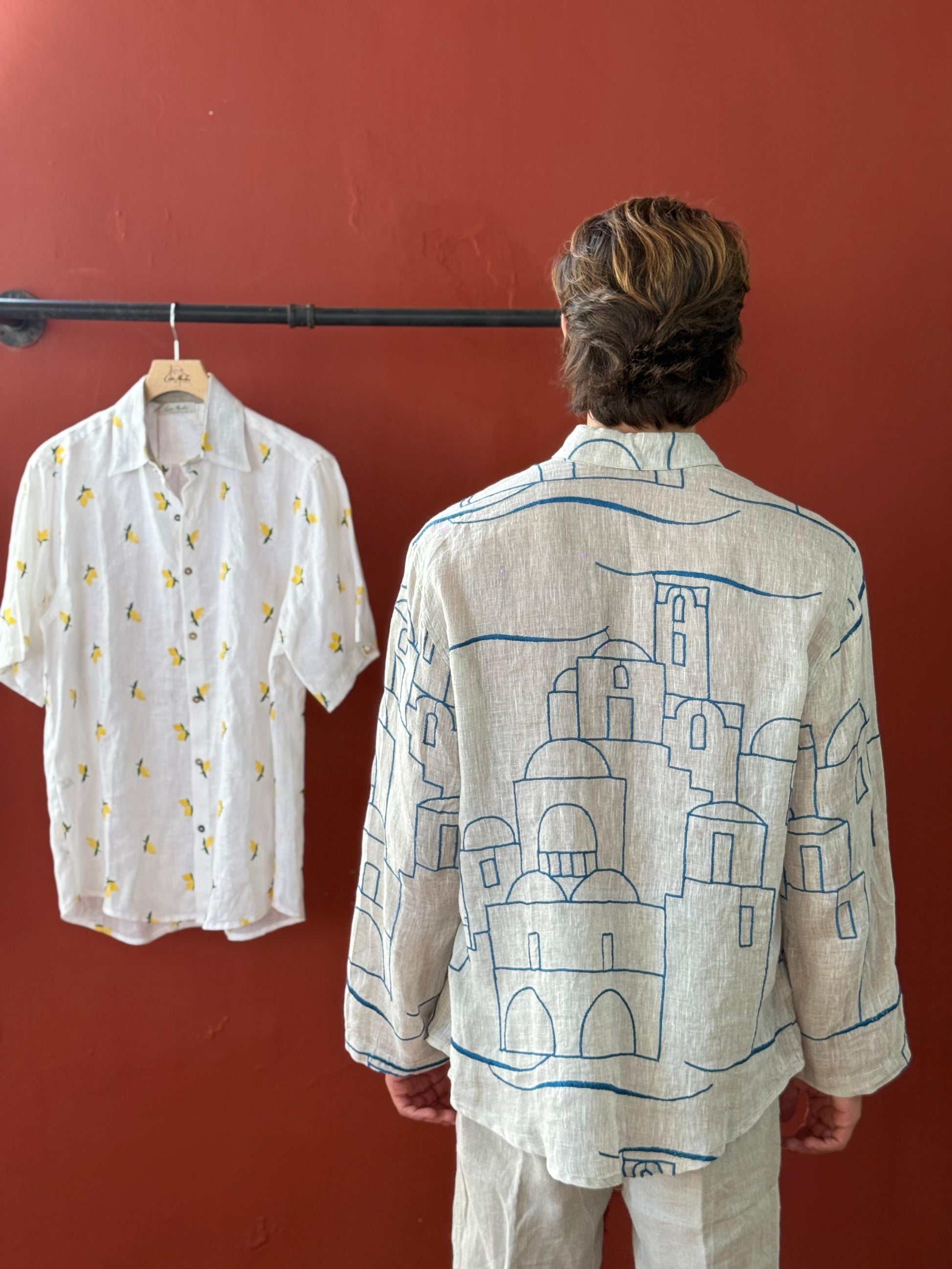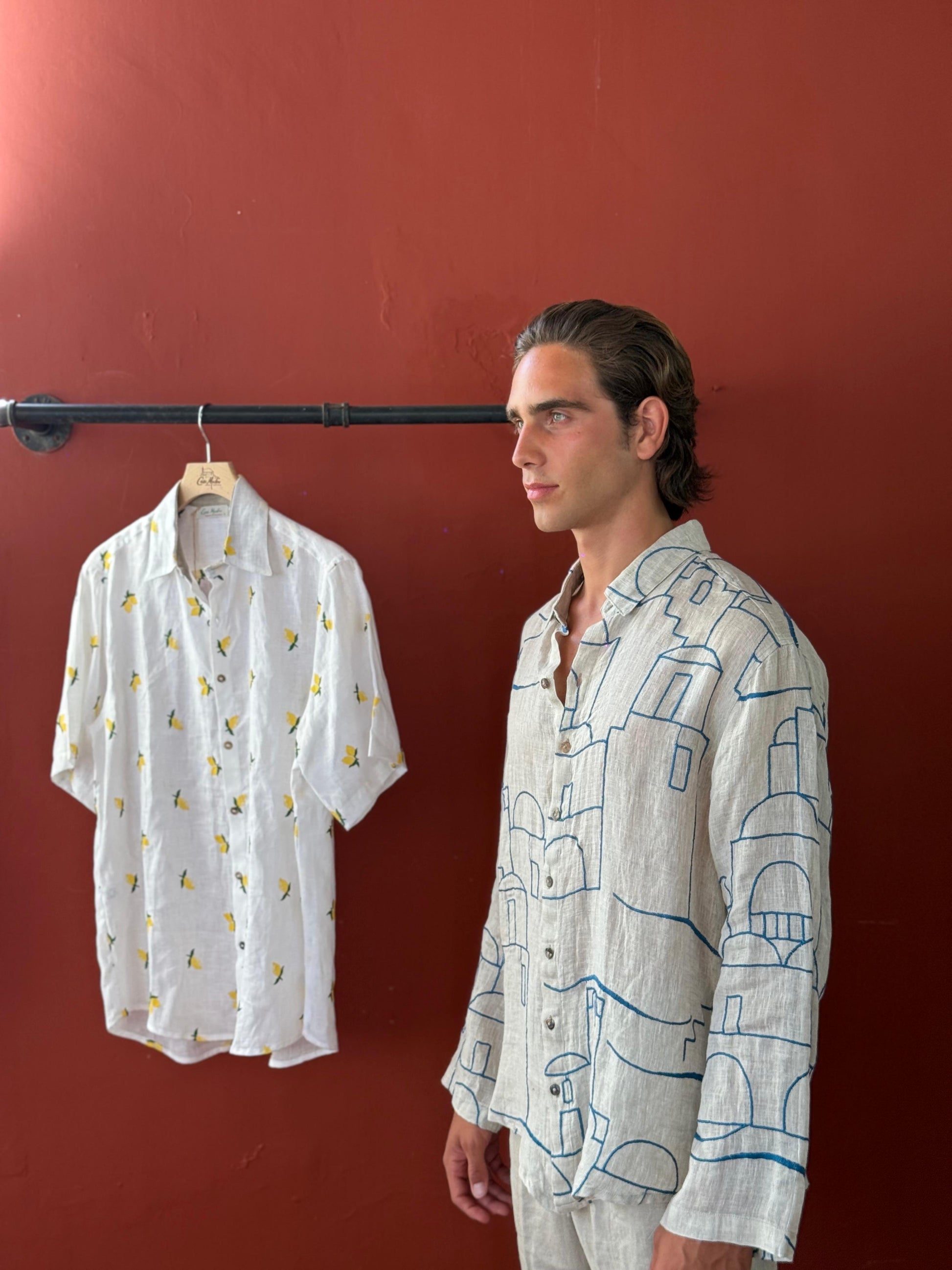 CAMICIA RICAMO POSITANO OUTLINE HOUSES EMBROIDERED