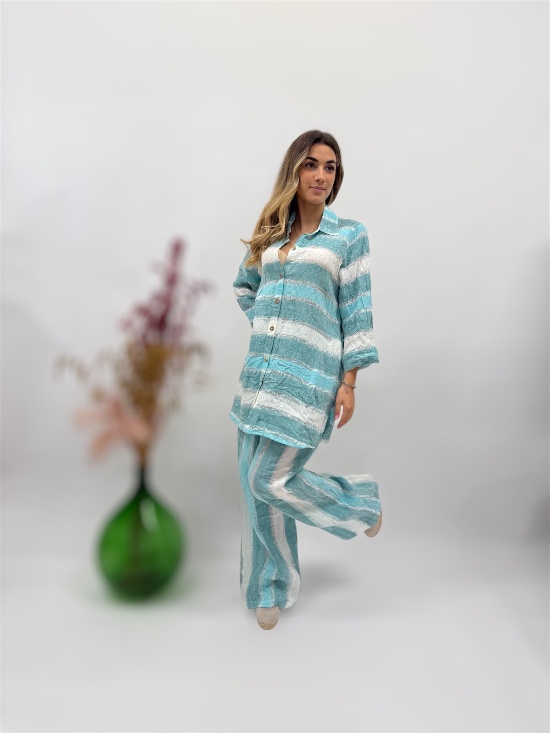 Il lino è resistente alle pieghe: eventuali grinze si ammorbidiscono con il calore del corpo o con una leggera stiratura a vapore.