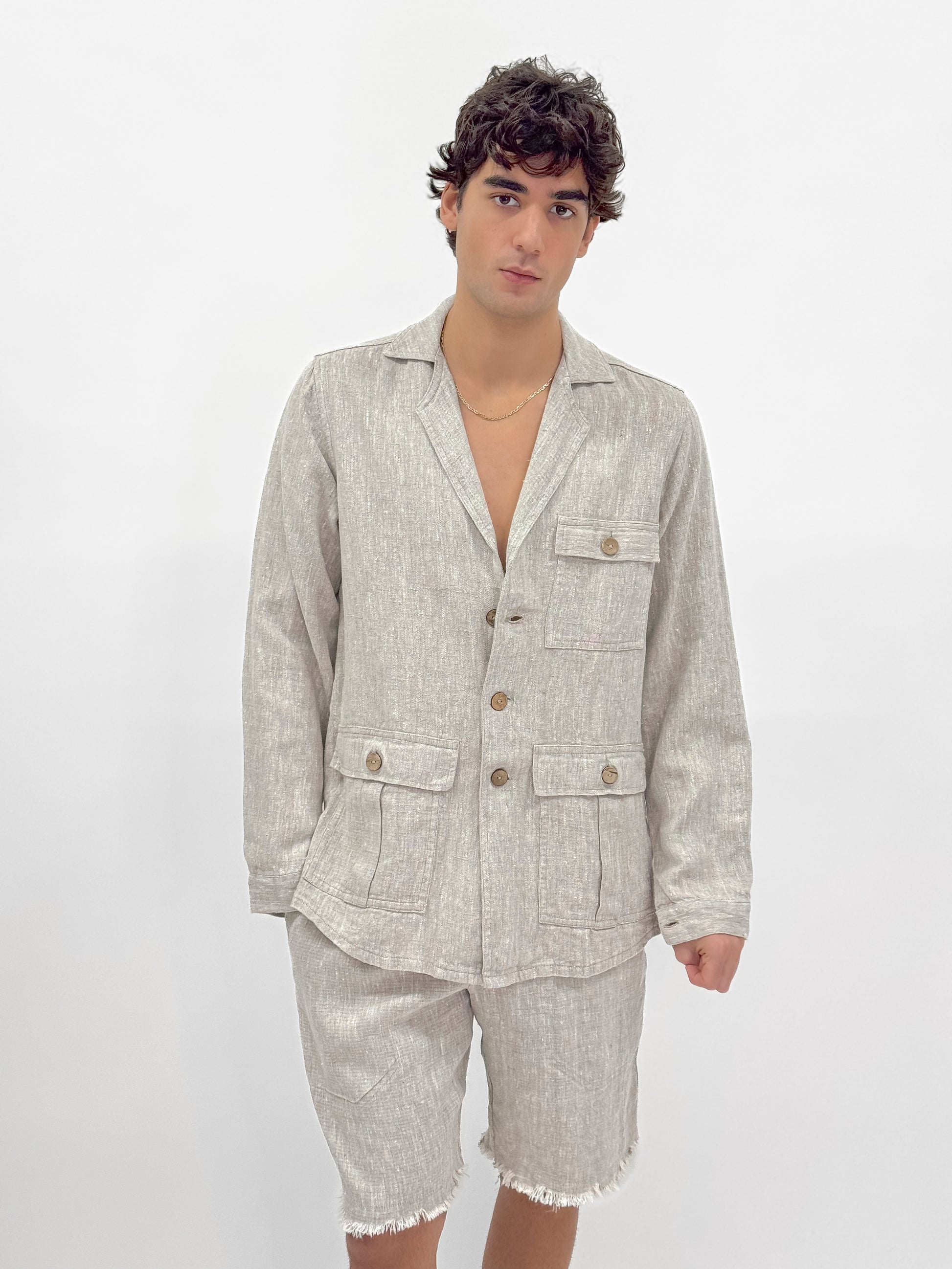 - Beige raw linen jacket