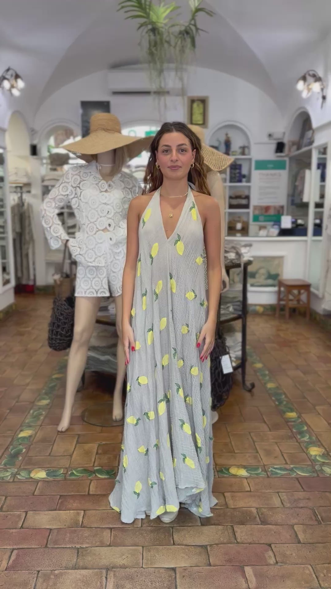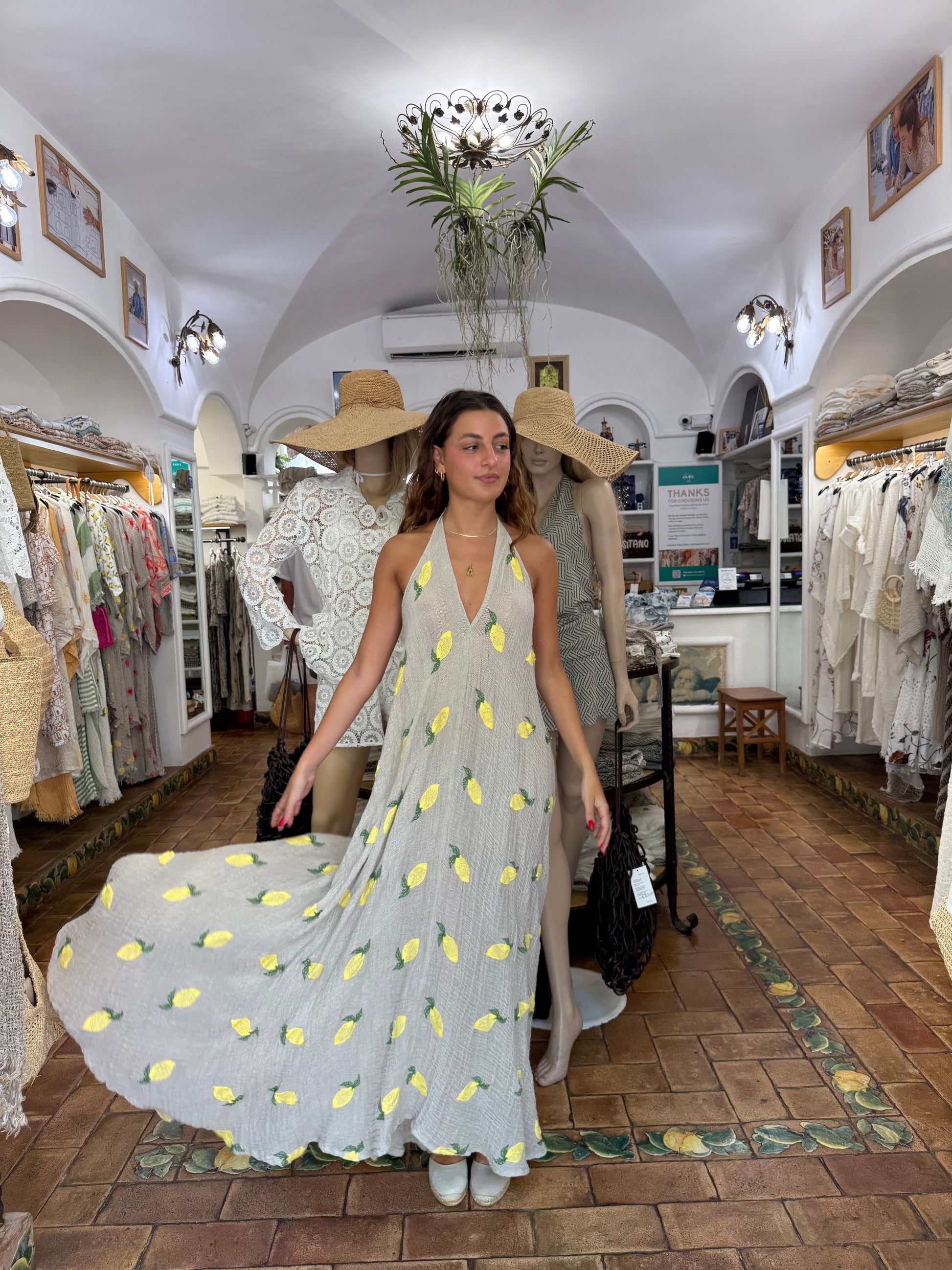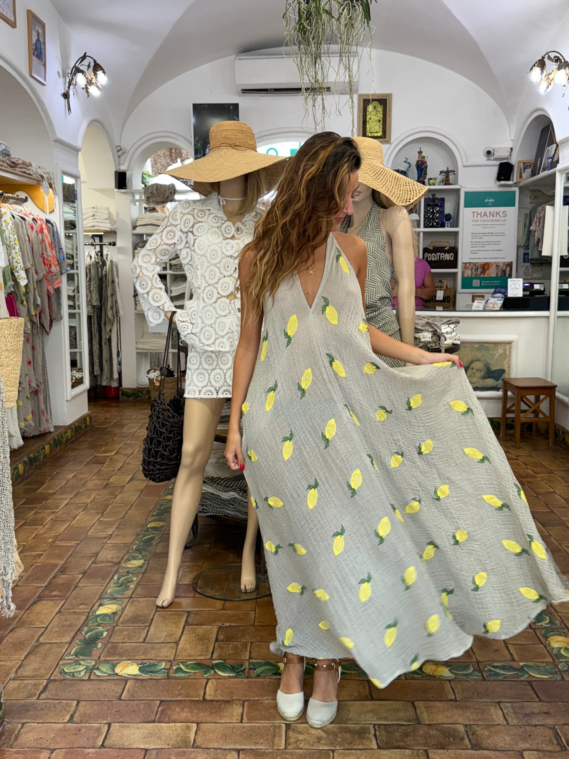 ABITO IN LINO GREZZO E MAXI LIMONI RICAMATI
