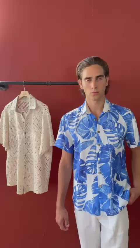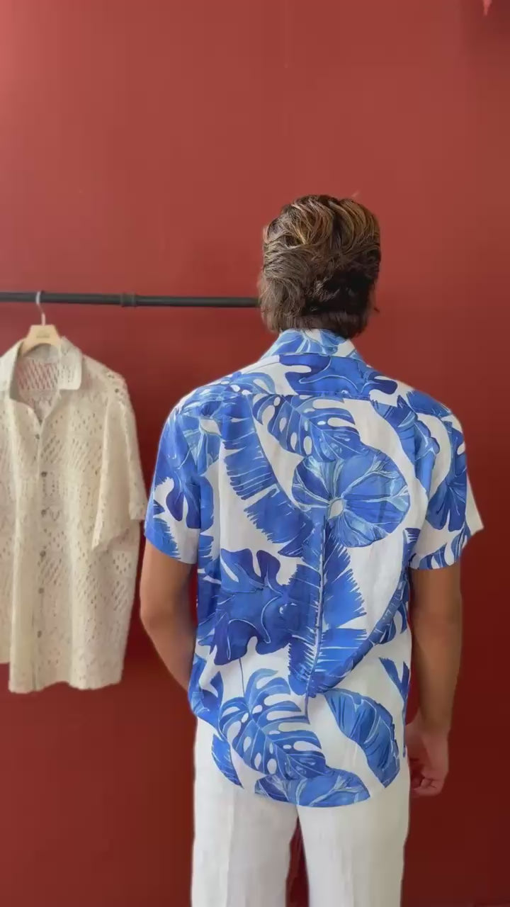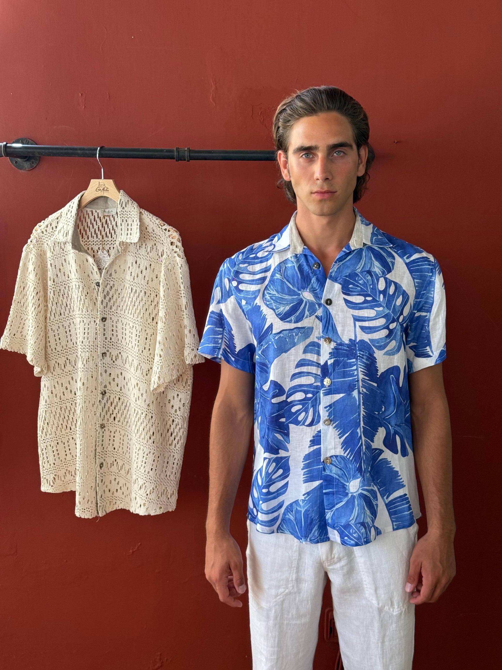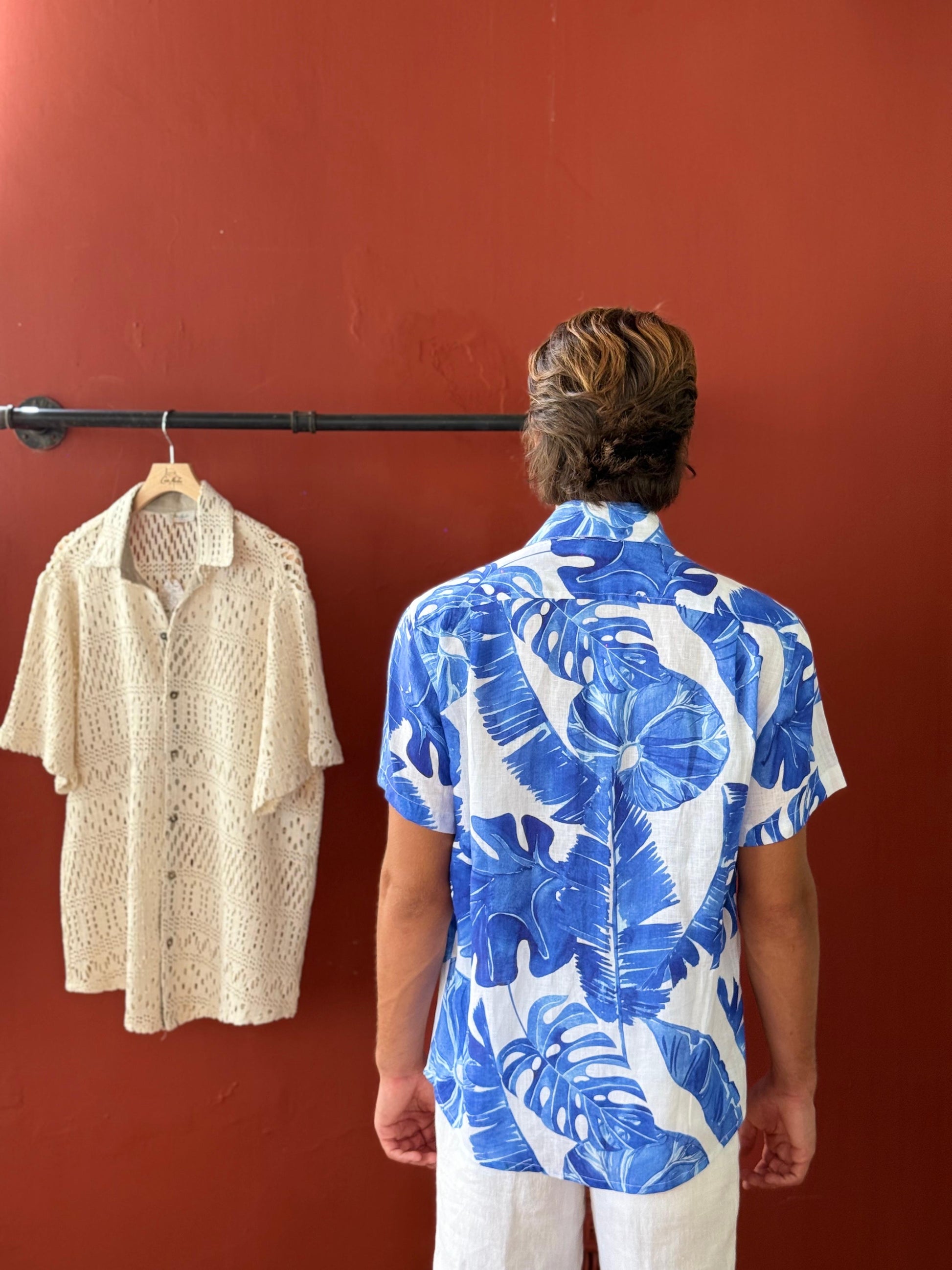 CAMICIA IN STAMPA DI LINO FOGLIE BLUE