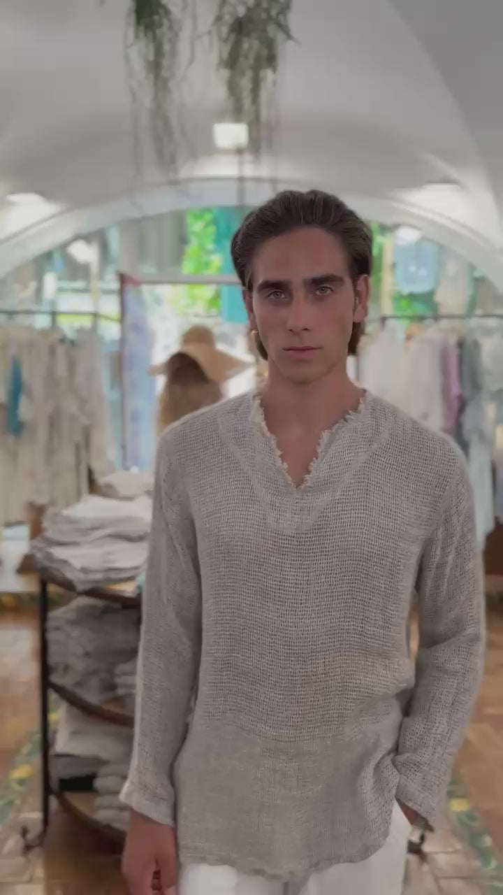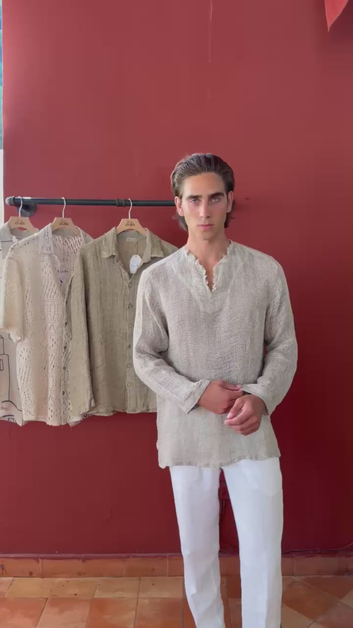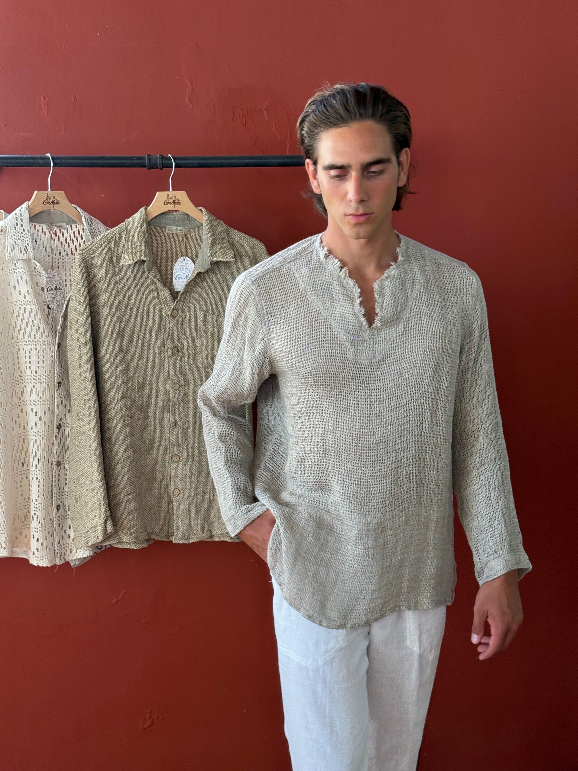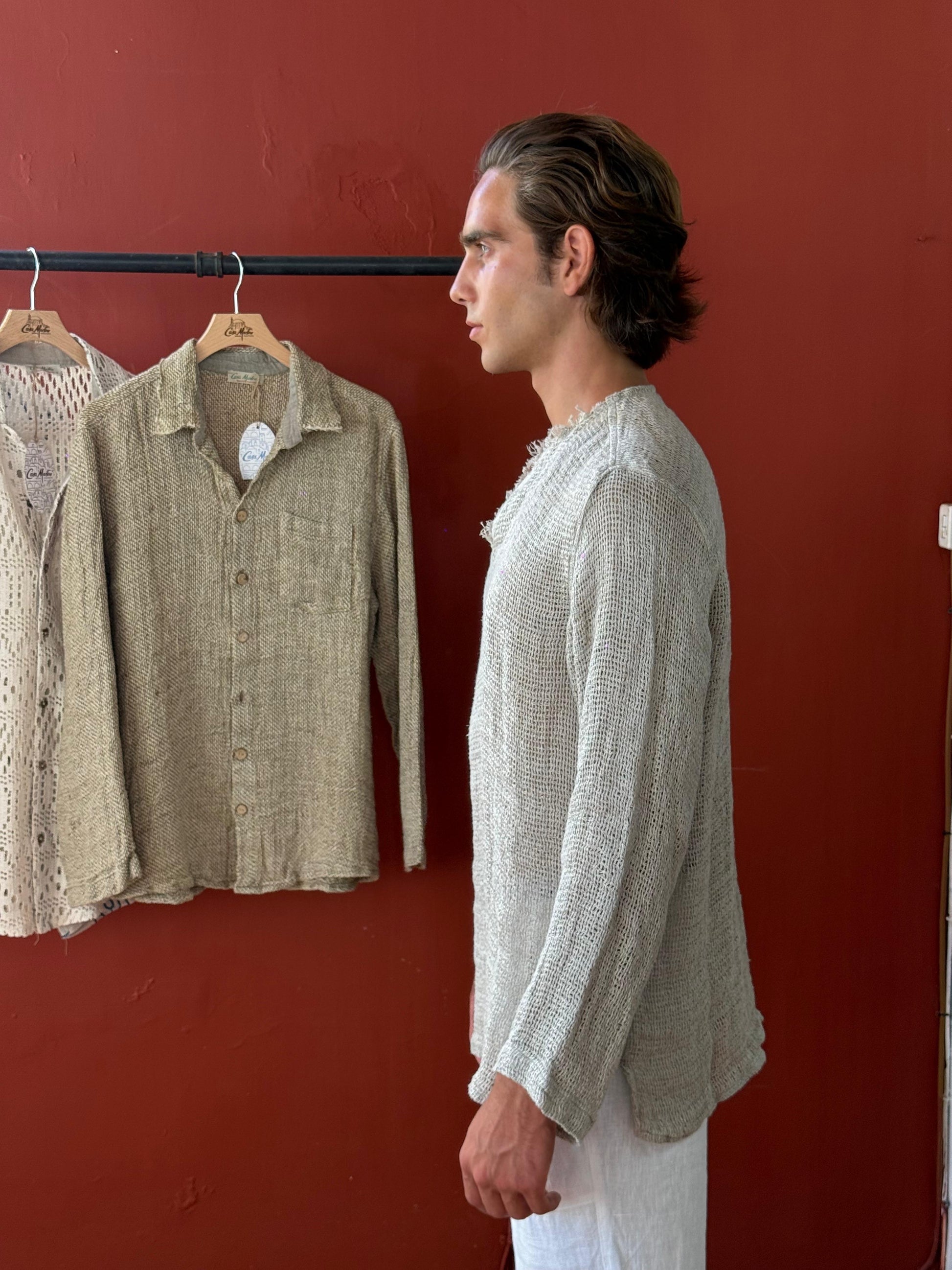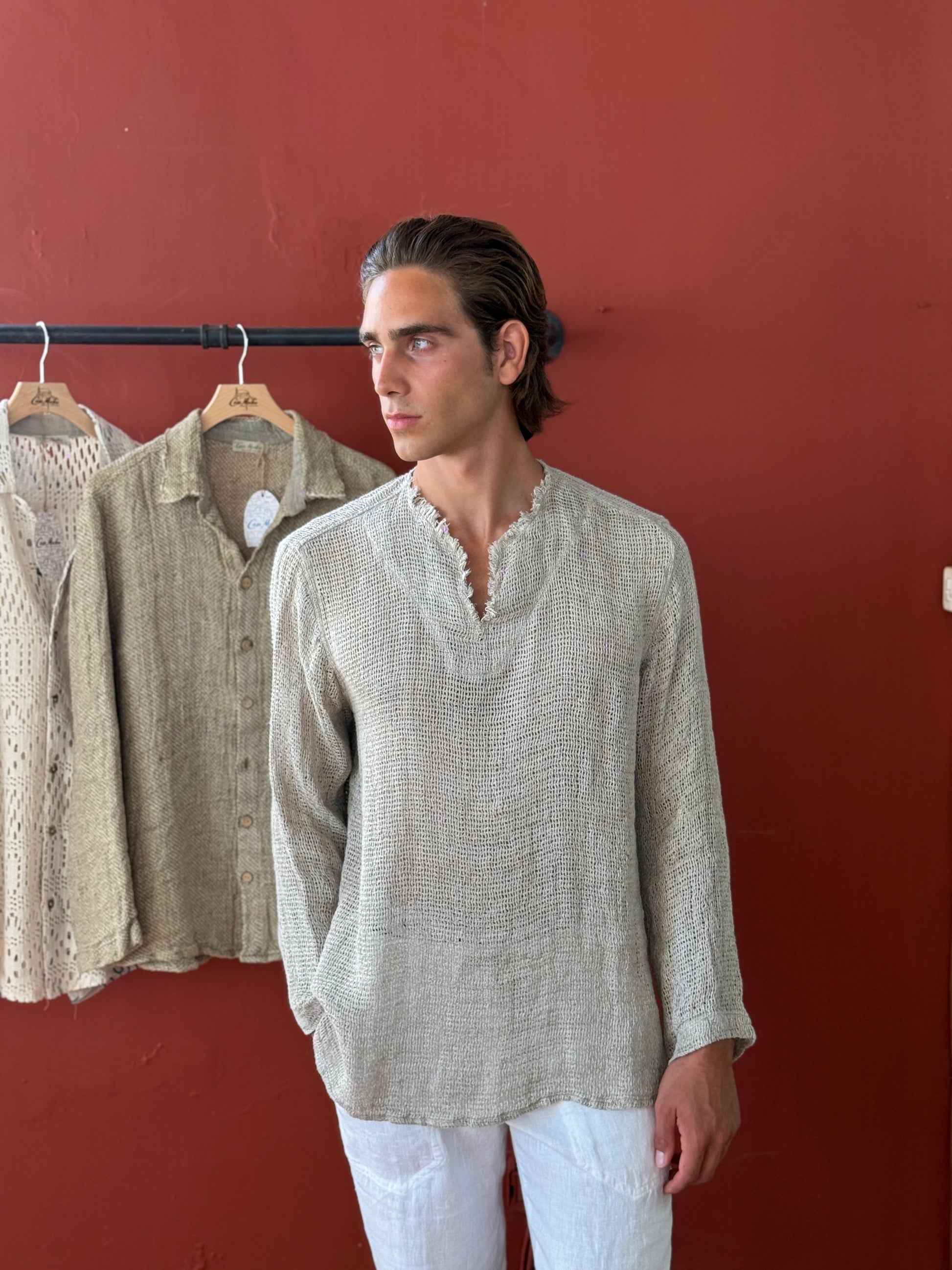 • Camicia in lino rustico
