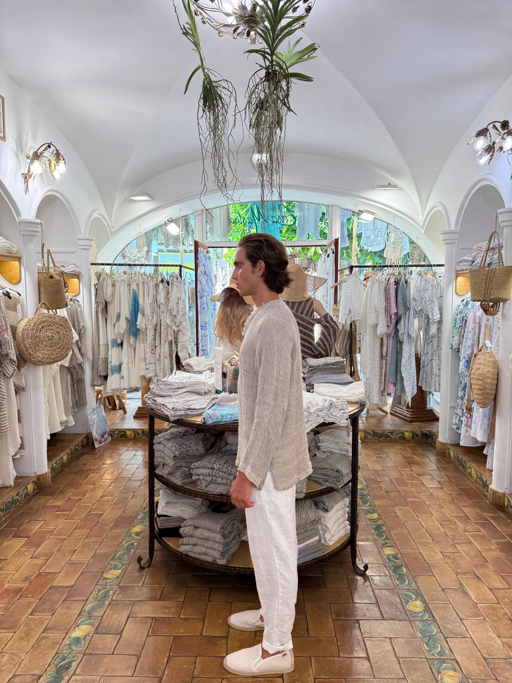 Ogni capo nasce dalla tradizione della Costiera Amalfitana: fibre naturali selezionate e lavorazioni fatte a mano per regalarti stile e comfort senza tempo.