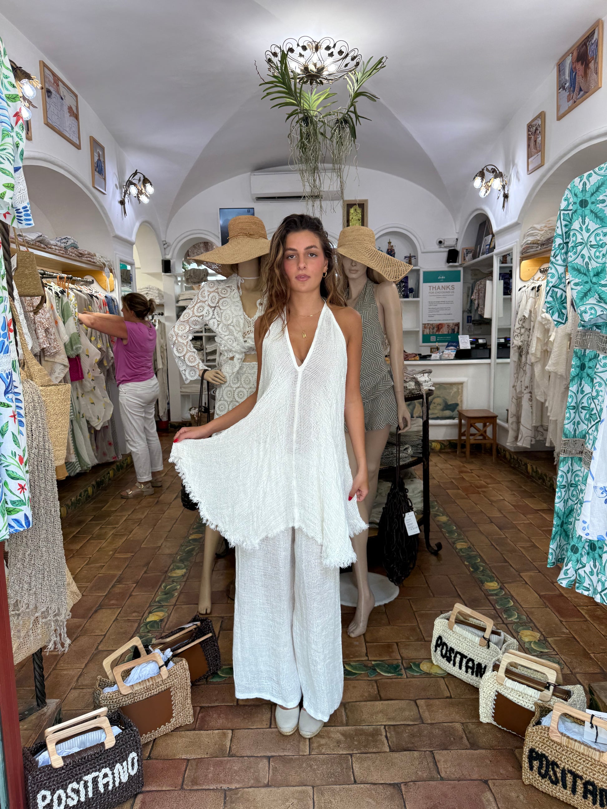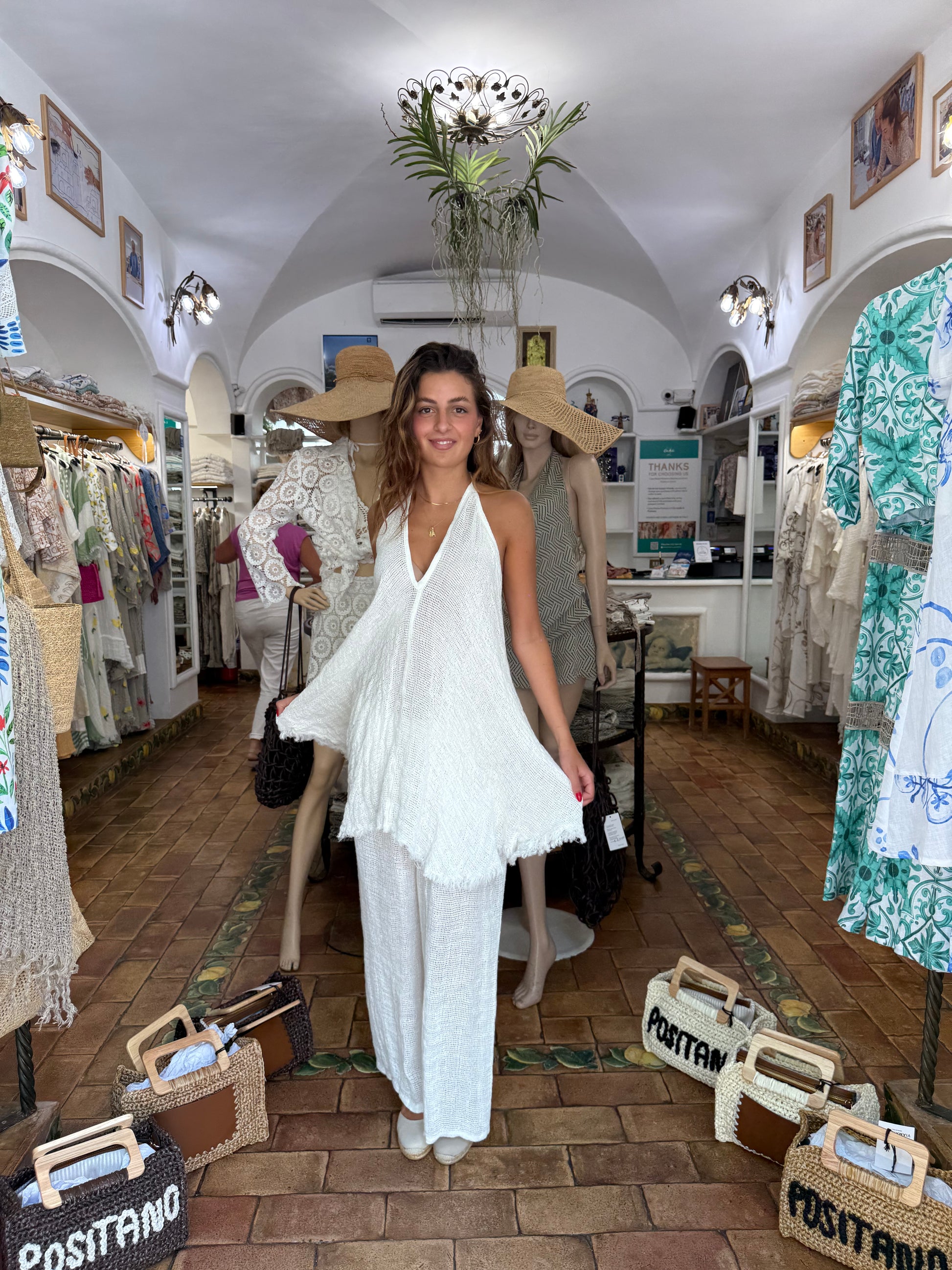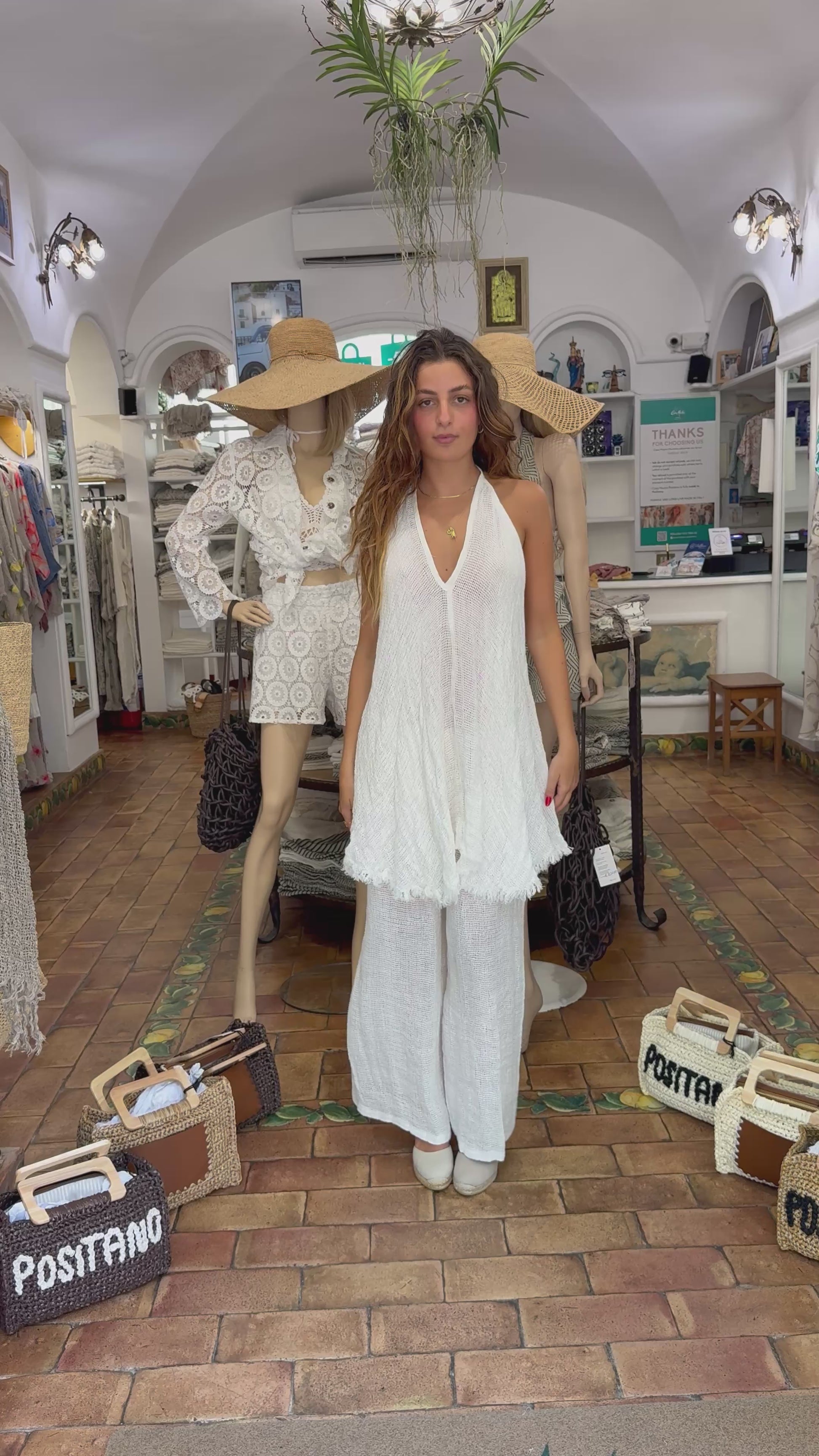 SET TOP E PANTALONE IN RETE DI LINO 100% made in Positano